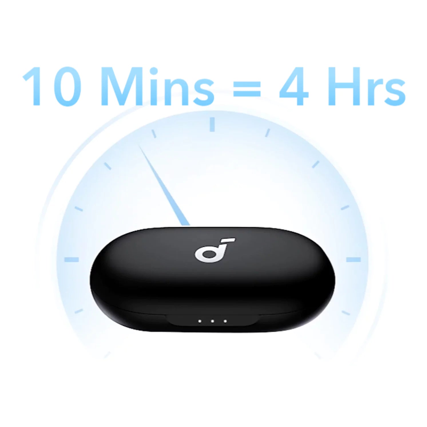 AeroFit's ultra-fast charging technology delivers 4 hours of playtime with just a 10-minute charge, keeping you tuned in without the wait.