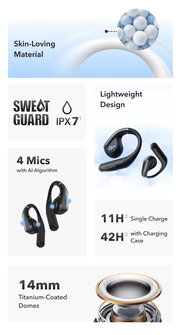 Our advanced AI algorithms and four beam-forming mics ensure superior audio quality, keeping you connected even in bustling environments