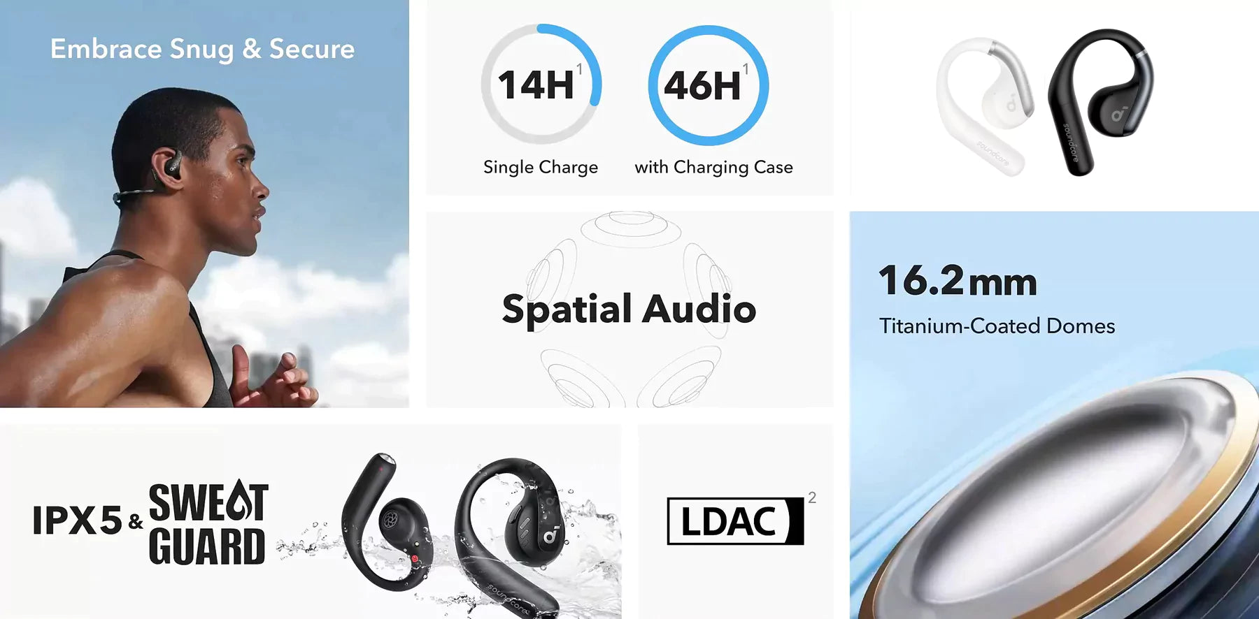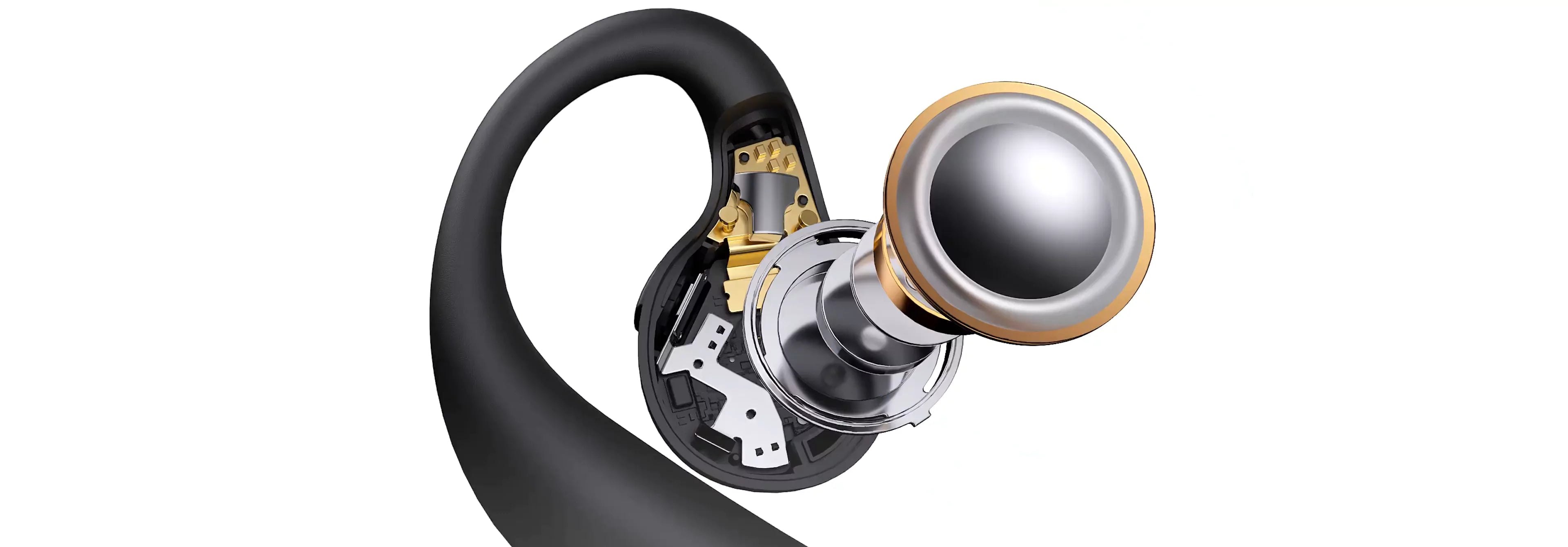 Dive into the rhythm with AeroFit Pro's enhanced audio capabilities. Featuring 16.2mm oversized drivers and titanium-coated domes, experience deep bass, expansive soundstage, and crystal-clear audio that brings every beat to life.