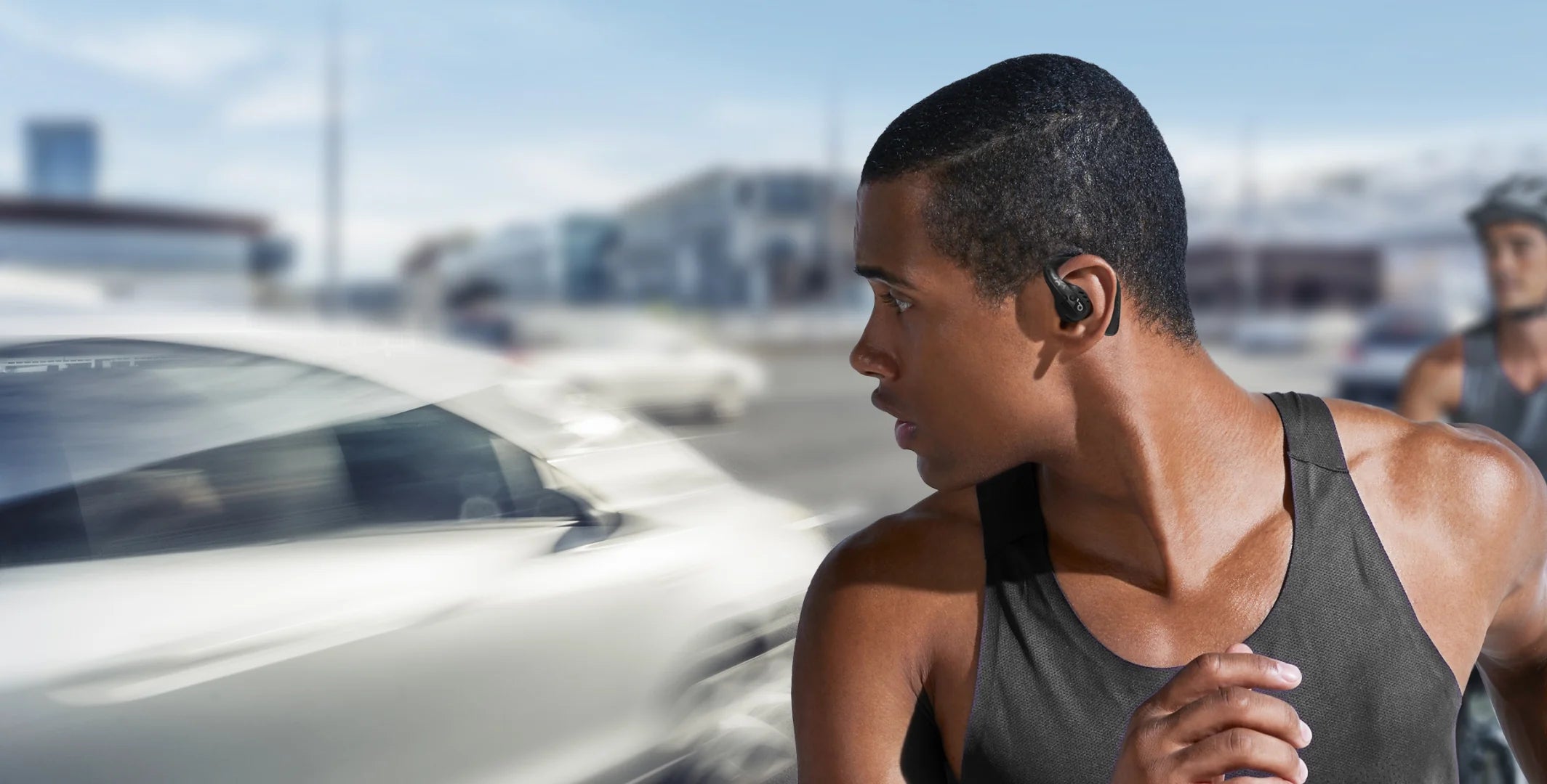 Experience the world around you while staying tuned in. AeroFit Pro's innovative open-ear design allows you to remain aware of your surroundings, ensuring you can enjoy your music and focus on your activities without missing a beat. Stay connected and secure in any environment with AeroFit Pro.