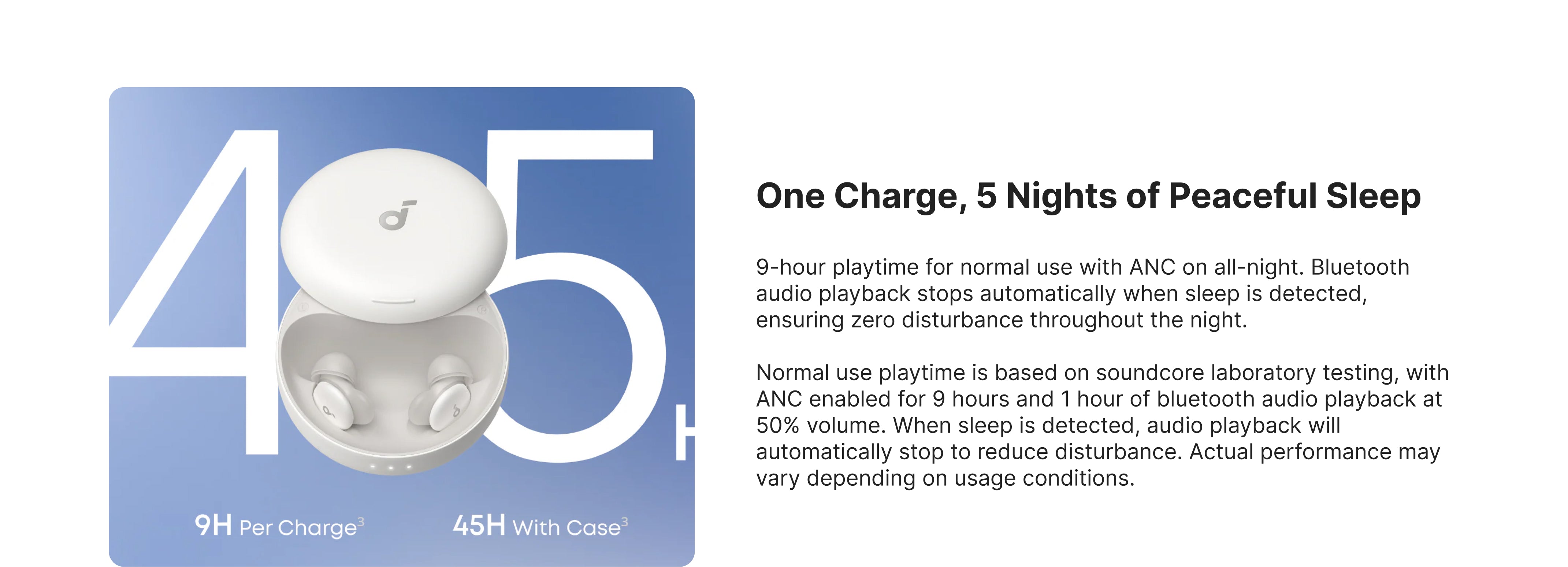 Soundcore Sleep A30 is built for Filipinos who want deeper, uninterrupted rest—whether you're dealing with a snoring partner, noisy appliances, barking dogs, or city traffic. Smart ANC with Ear Canal Adaptation automatically adjusts noise cancellation based on your unique ear shape, creating a quieter, more restful sleep environment.
