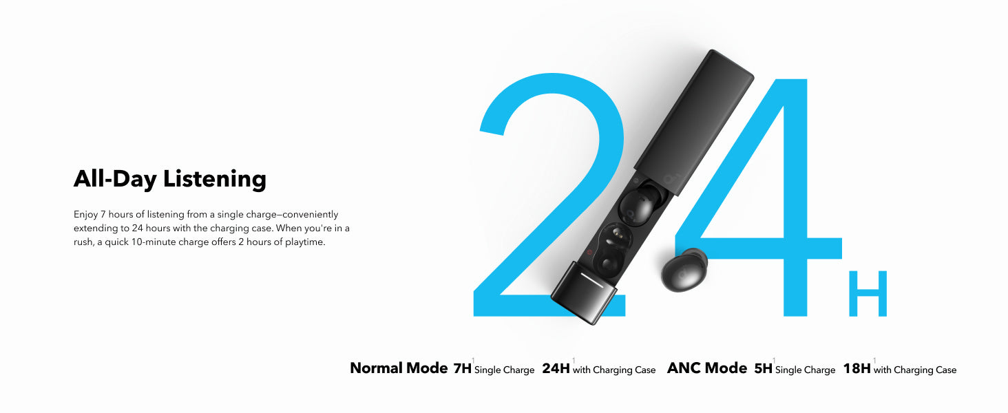 Soundcoore A30i features 6mm composite diaphragms so you can enjoy well-balanced sound with rich mids, mightly bass, and crisp highs