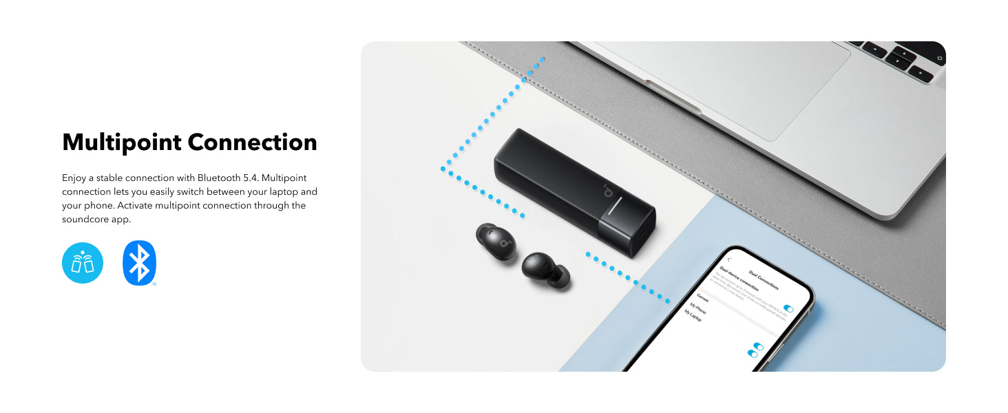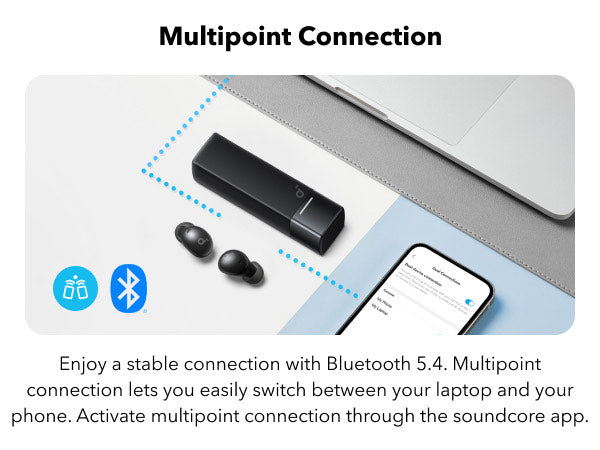 Easy to Use: Enjoy a simple and stable connection with Bluetooth 5.4. Multipoint connection lets you connect with your laptop and your phone, easily switching between them. Use a single earbud whenever the situation demands it.