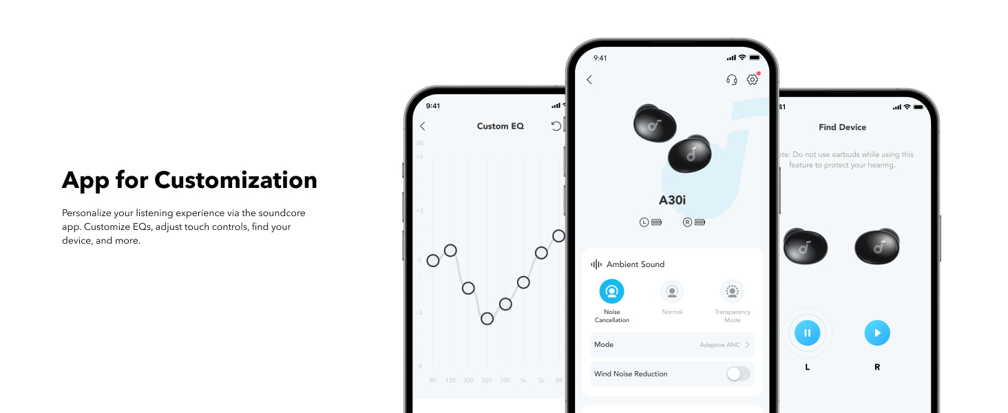 Clear Sound with 3D Surround Sound Effect: Soundcore A30i features composite diaphragms so you can enjoy clear and well-balanced sound. Access the Soundcore app to activate the 3D surround sound effect for a more immersive audio experience.