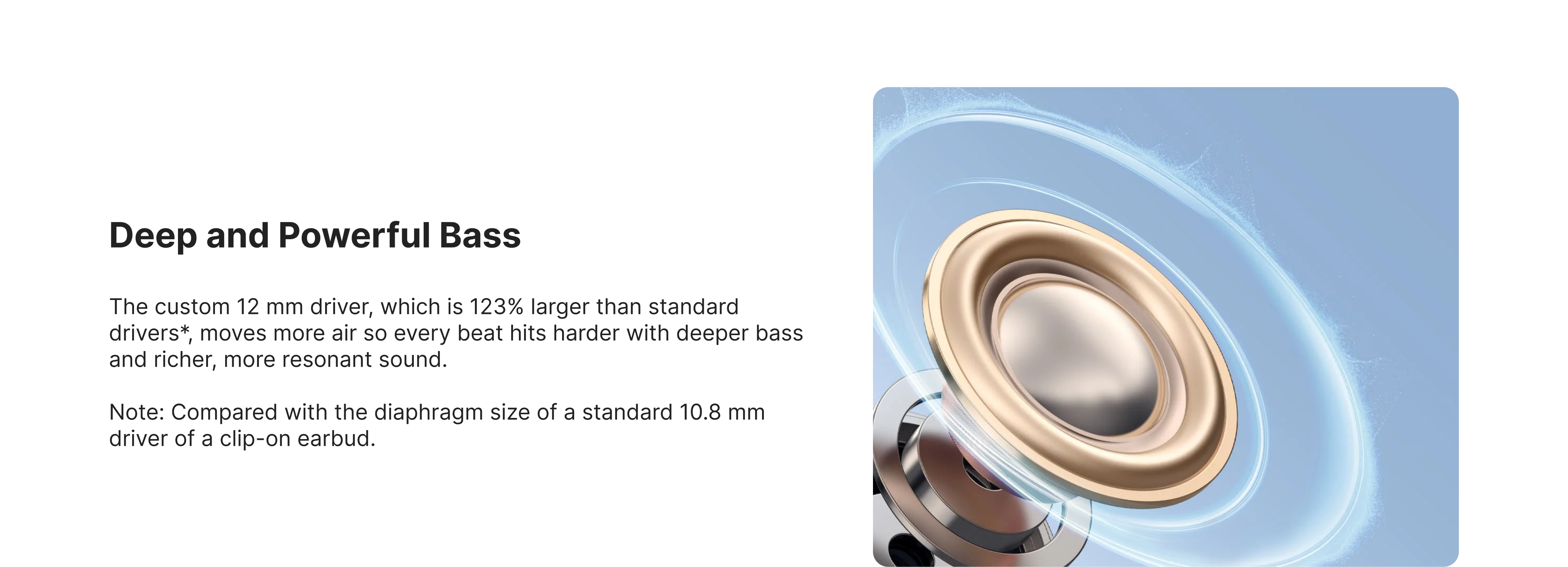 Enjoy immersive, deeper bass and crisp clarity ideal for music, vlogs, and podcasts. -