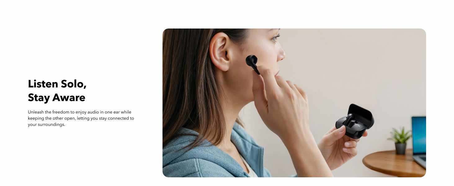 Clear Sound: soundcore K20i earbuds are engineered with a 13mm dynamic driver and innovative torus design, coupled with BassUp technology, ideal for podcasts.