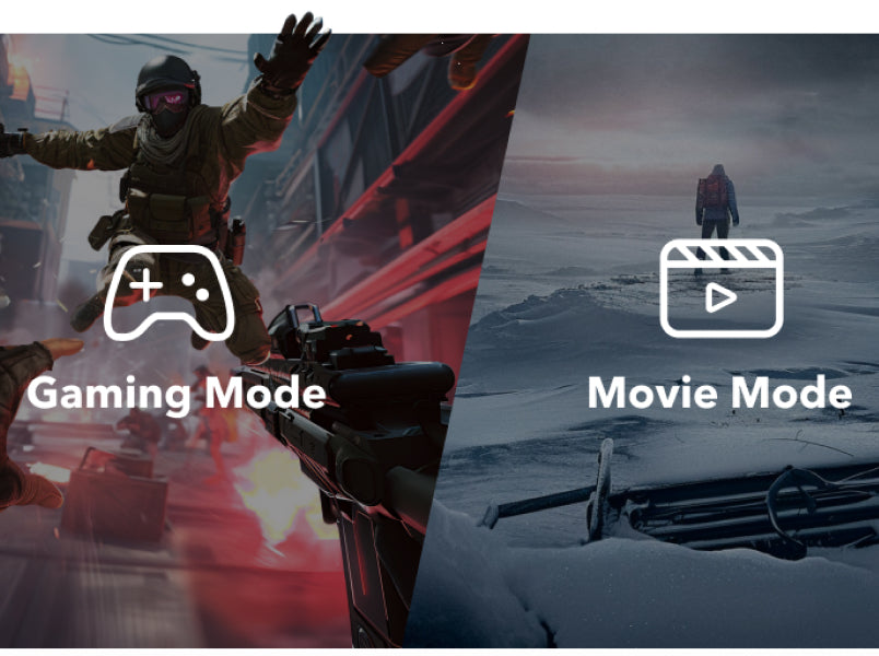 The Gaming Mode enhances and emphasizes the sound of footsteps and more for immersive gameplay. While the Movie Mode places you as part of the story with 3D sound effects.