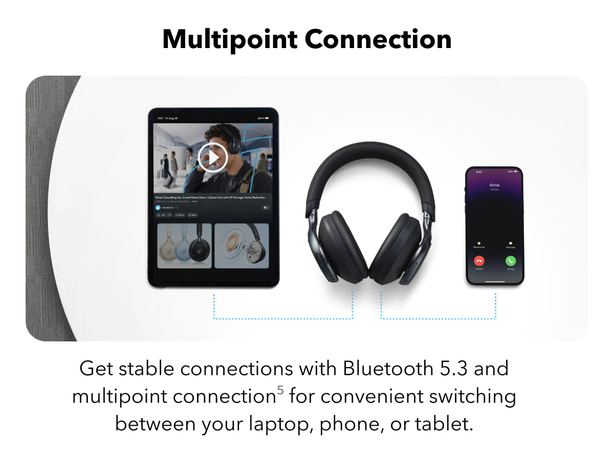 2. Multipoint connection is enabled automatically. If you wish to change this, connect your Space One headphones with the soundcore app, and select Space One from the "Device List". Here, you can manually deactivate multipoint connecting from the settings menu.