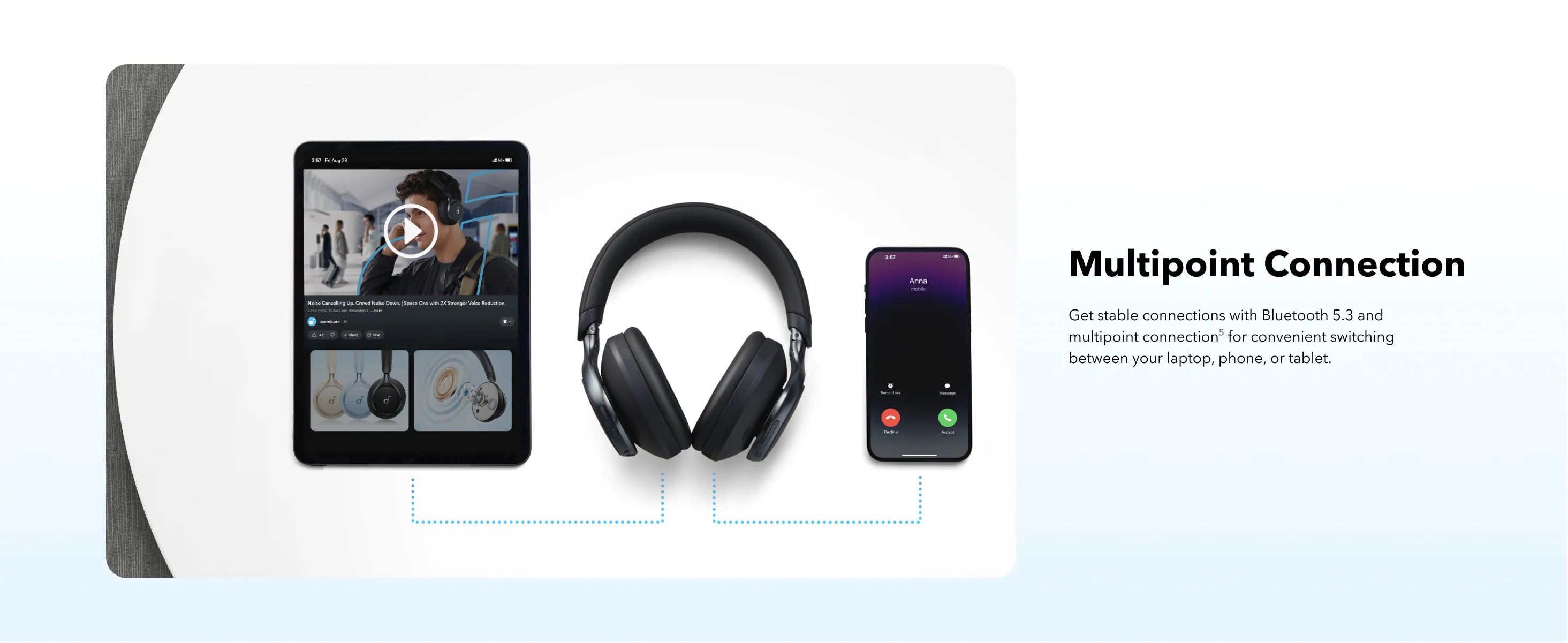 2. The headphones cannot enter multipoint connection pairing mode while in LDAC mode. Please exit LDAC mode in the soundcore app settings and try again.