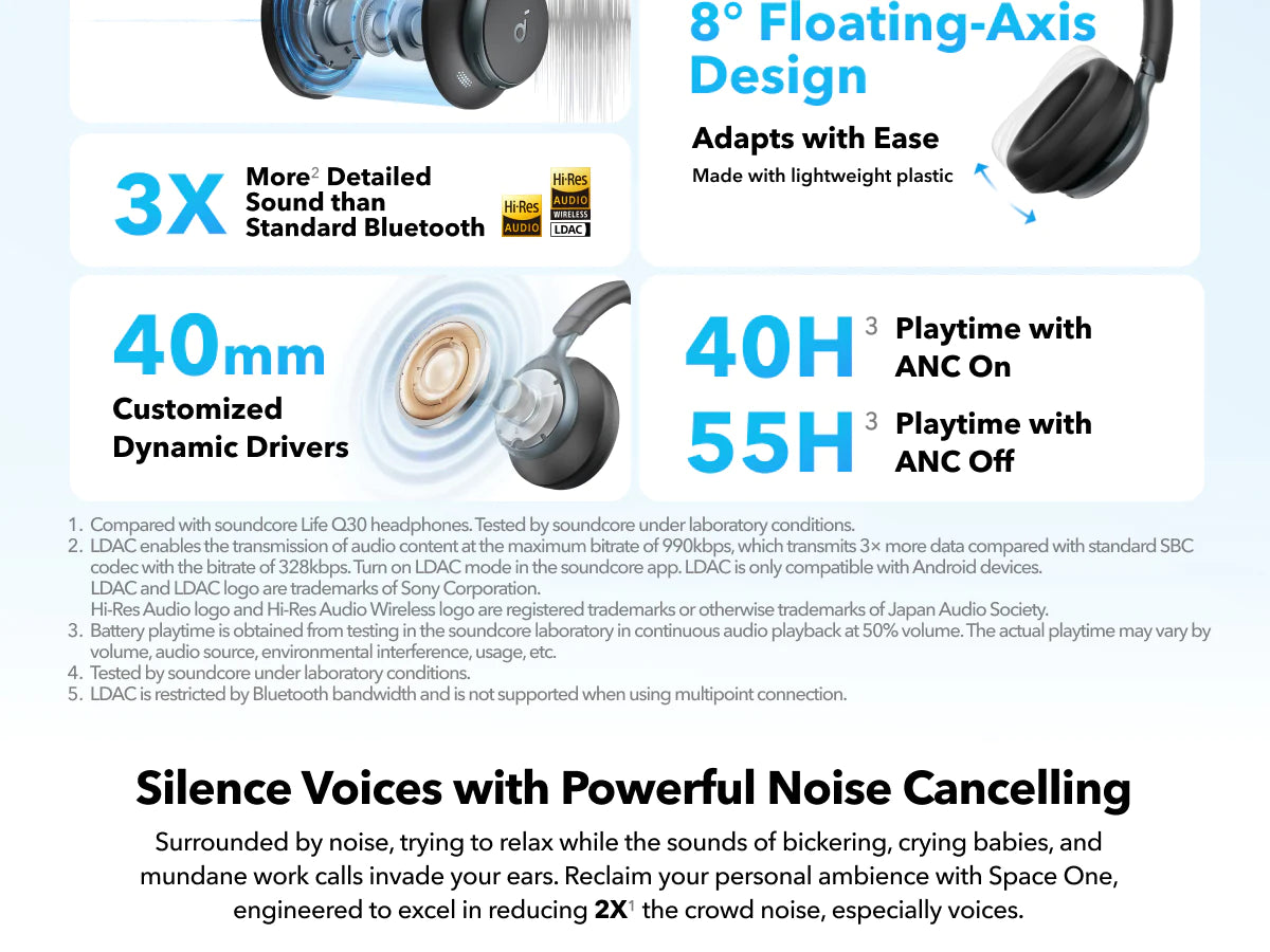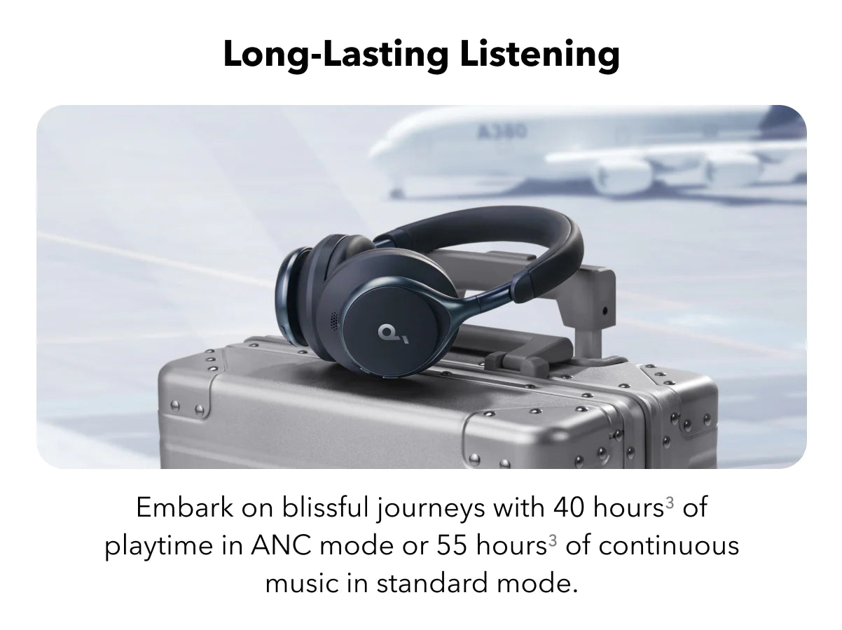 - Worry-free battery (40H ANC on, 55H ANC off)