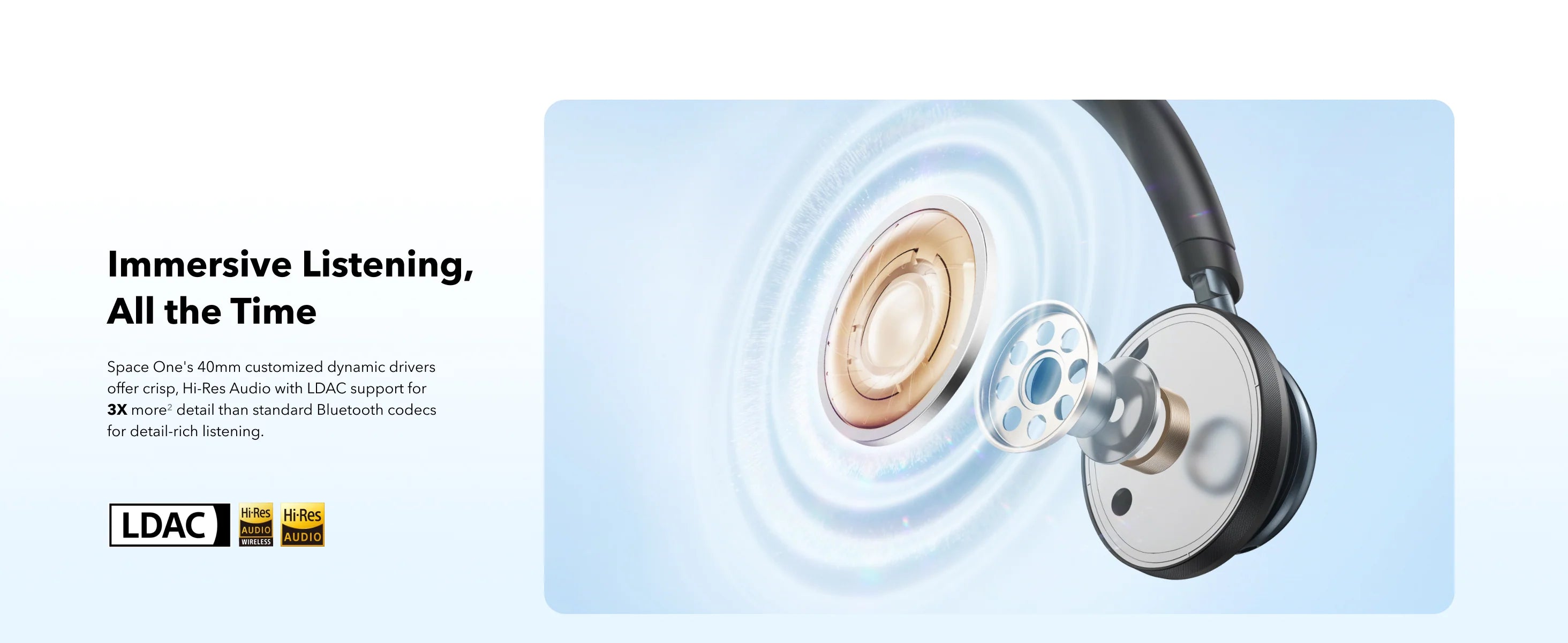 - Crisp, Hi-Res sound via 40mm dynamic drivers
