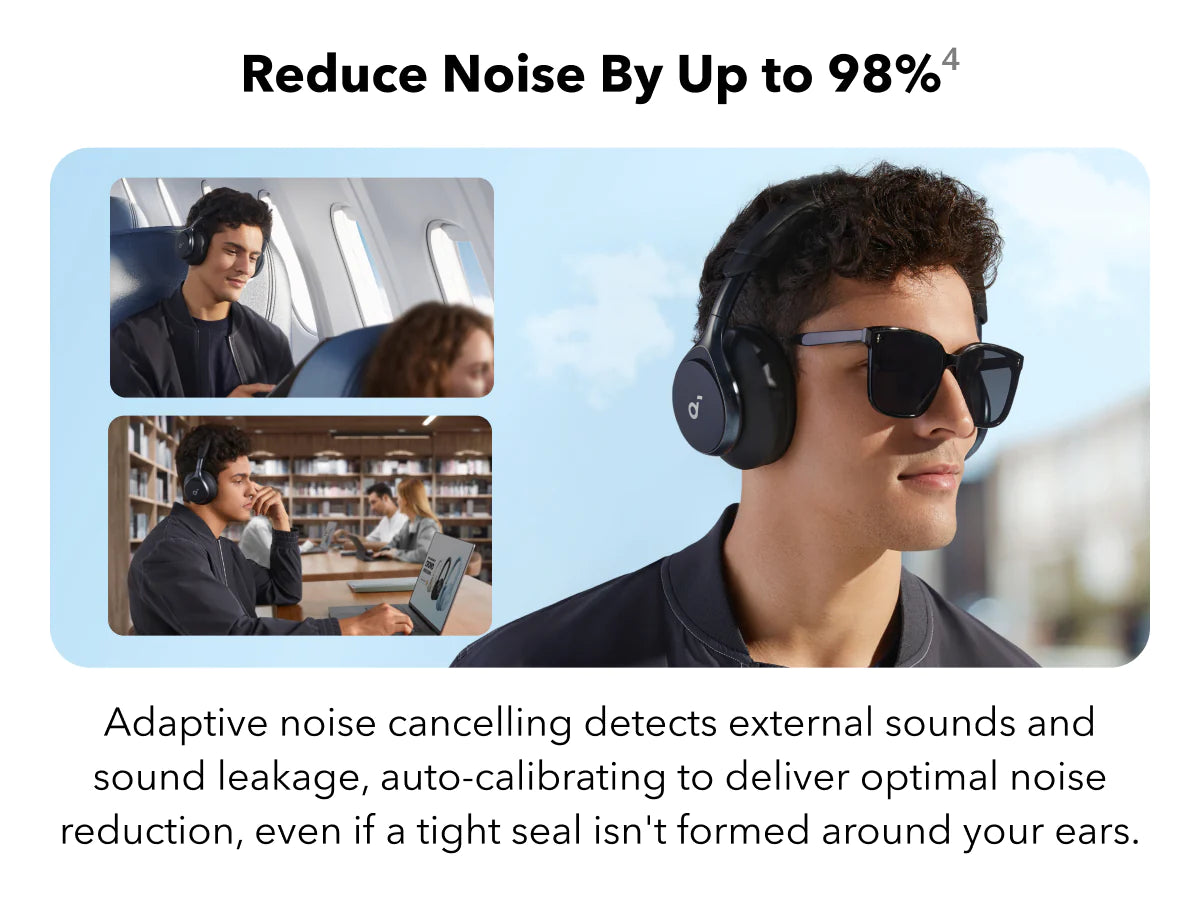 - Reduce noise by up to 98%* with adaptive noise cancelling *Tested by soundcore under laboratory conditions