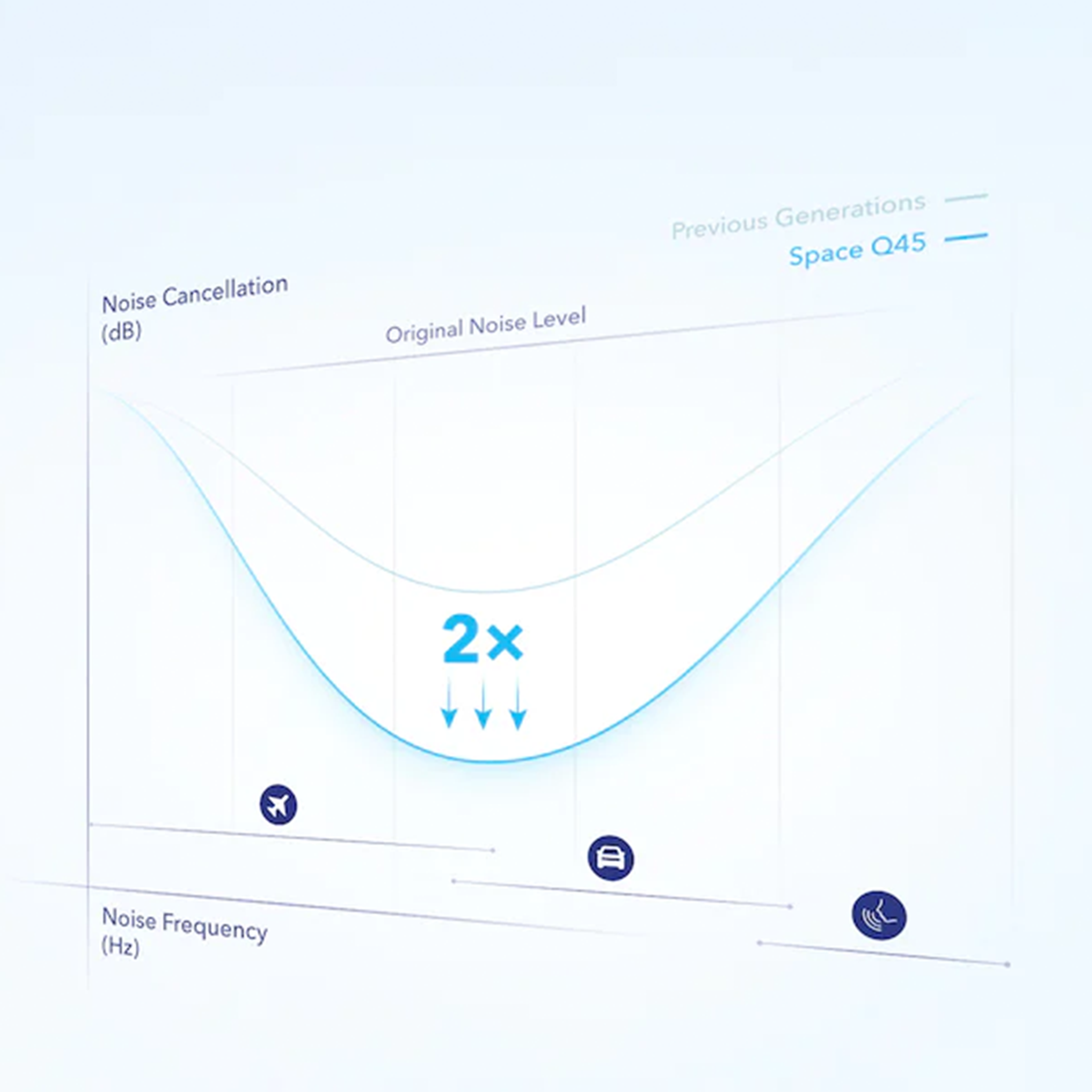 Space Q45's noise cancelling automatically adapts based on the noise from your surroundings.